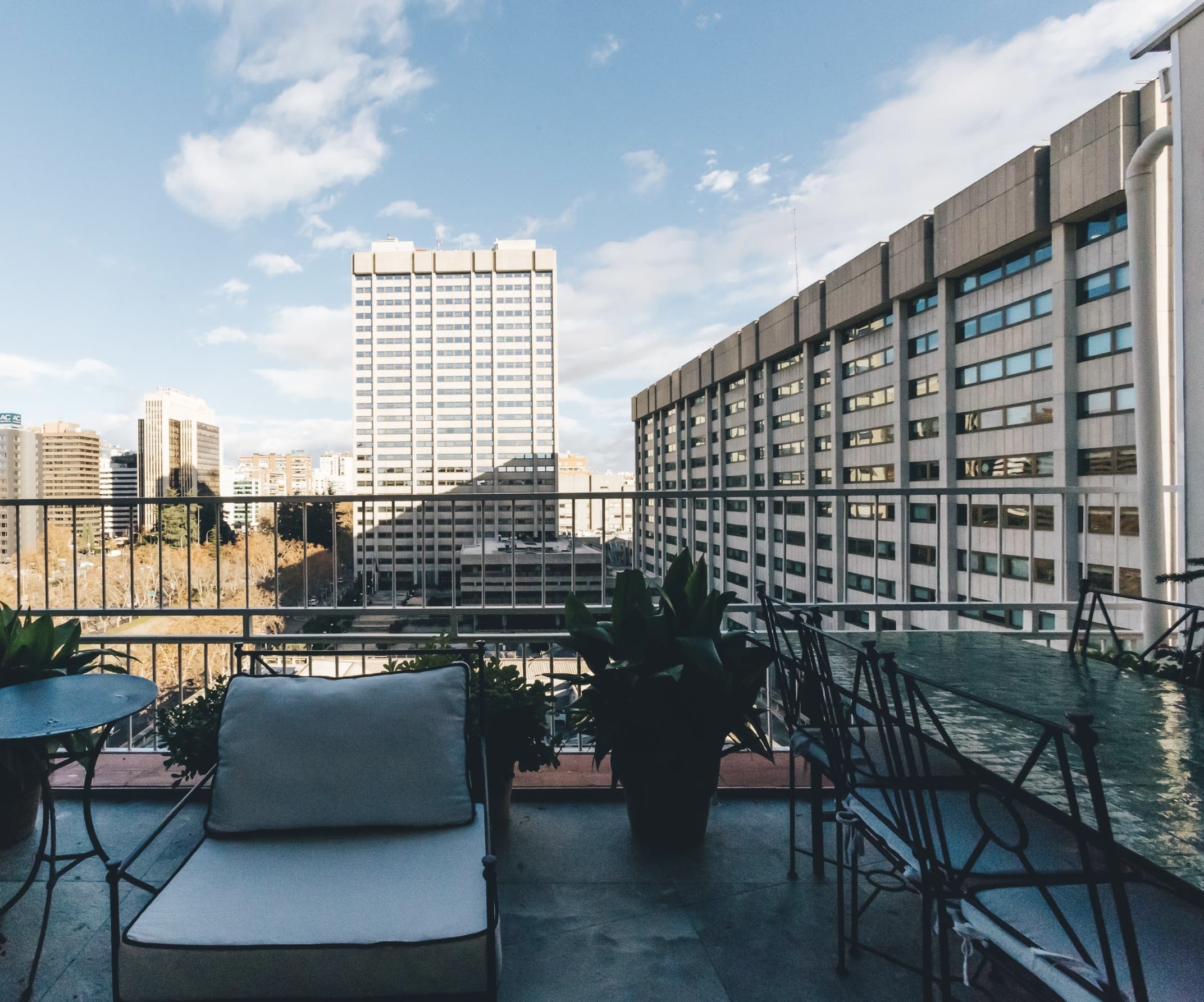 Su gran valor diferencial es la terraza de aproximadamente 40 m², con vistas privilegiadas al Paseo de la Castellana y Cuzco, perfecta para escenas exteriores, entrevistas, sesiones lifestyle o eventos corporativos íntimos.