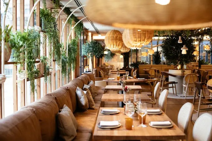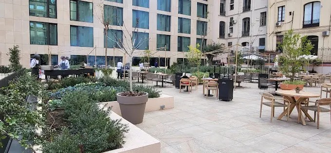 Su salón interior, adornado con vegetación y mobiliario elegante, y su amplia terraza exterior ofrecen un entorno versátil perfecto para cocktails, networking, presentaciones de producto o celebraciones B2B.