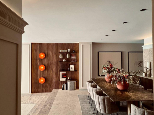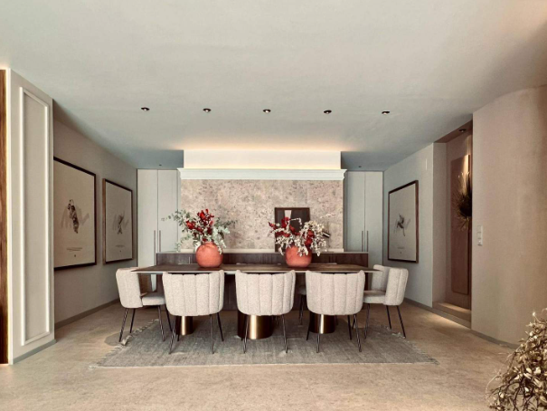 La vivienda se caracteriza por sus amplias estancias distribuidas en dos dormitorios y un gran salón comedor con una cocina semi abierta. Dispone de dos baños completos, uno de ellos en suite. Grandes ventanales permiten que la luz natural inunde la vivienda, creando un ambiente cálido y luminoso. Además, cuenta con una iluminación detallista con luz ambiental e indirecta para generar interés en el espacio. La estancia principal, que comprende el salón comedor y la cocina, tiene una superficie total de 60 m². El resto de la superficie se distribuye en dos amplios dormitorios y dos baños. Tanto el salón como los dormitorios tienen acceso desde las zonas comunes del edificio, lo que resulta ideal para ganar diferentes ángulos de grabación. Los colores cálidos y claros generan un ambiente acogedor y confortable. Espacio perfecto para producciones y reuniones.