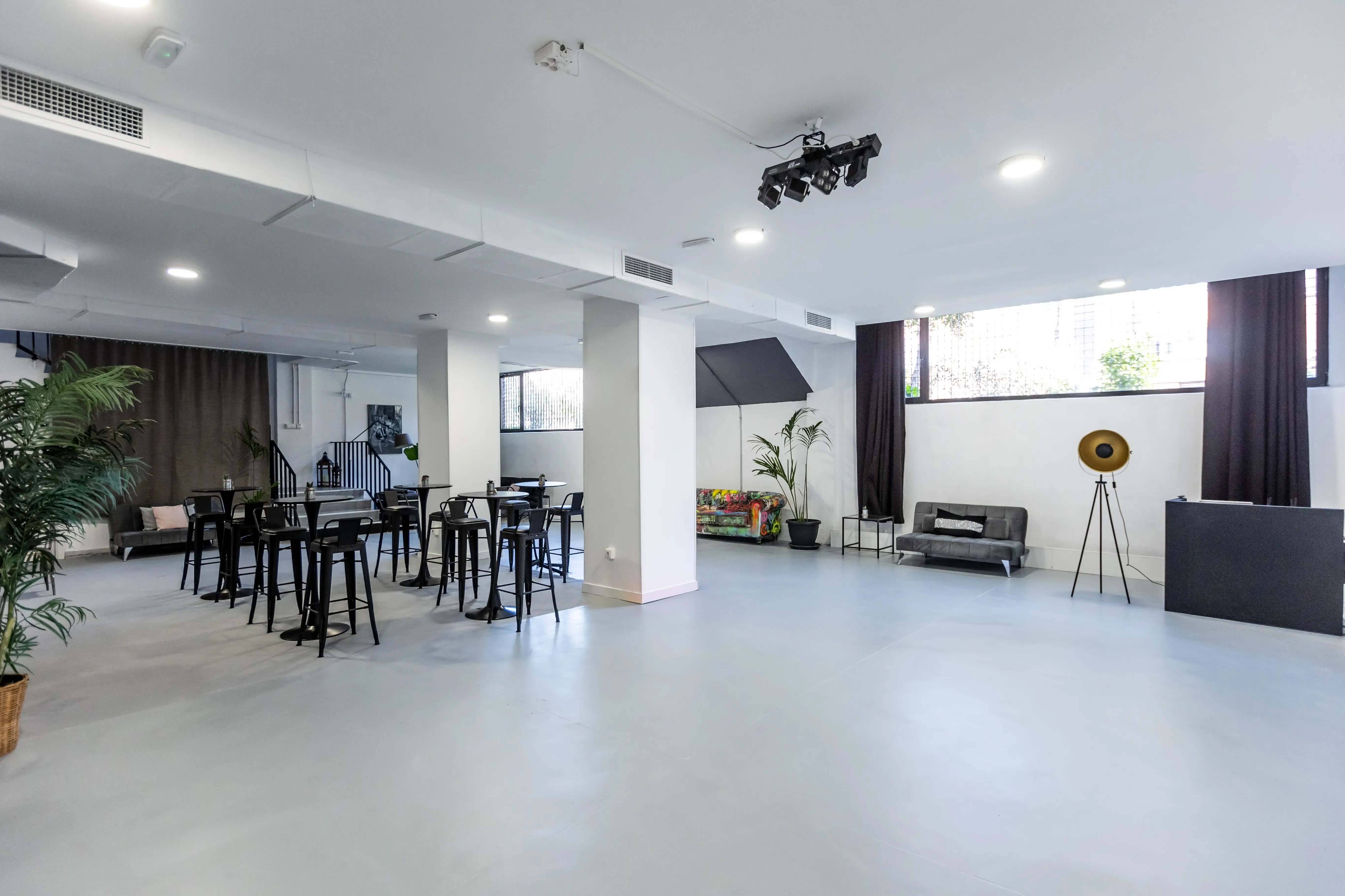 Mad Bunker es un espacio para eventos en Madrid diseñado para impulsar la creatividad y la personalización. Ubicado a pocos minutos de Plaza Castilla, este venue moderno y polivalente ofrece dos plantas diáfanas con luz natural y techos altos, lo que lo convierte en el lugar ideal para reuniones de empresa, workshops, presentaciones de producto, rodajes, eventos corporativos o experiencias de marca. Con una estética industrial y contemporánea, Mad Bunker permite transformar sus ambientes según las necesidades del evento. Además, ofrece una propuesta integral que incluye servicios de audiovisuales, mobiliario, catering y decoración, garantizando así una organización fluida y profesional. Una opción estratégica y funcional para empresas que buscan un espacio versátil en el corazón de Madrid, perfecto para crear experiencias memorables que conecten con el público.