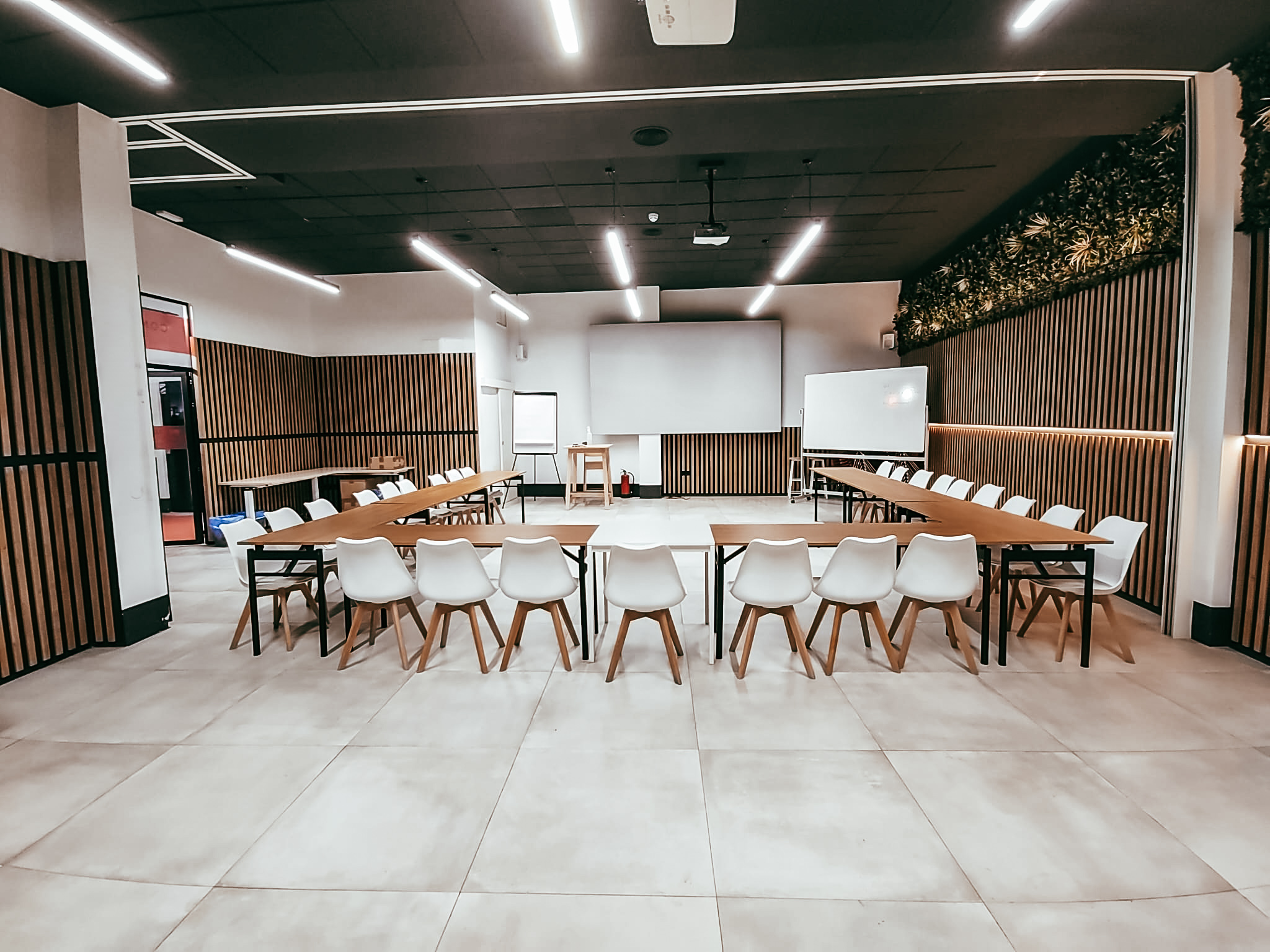 Este venue único ofrece más de 1.500 m² distribuidos en cuatro plantas, con salas de reuniones, espacios coworking, despachos privados y salas de conferencias, además de dos terrazas en la azotea ideales para celebrar eventos al aire libre, presentaciones de producto o afterworks con vistas a la ciudad.