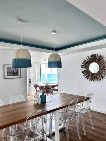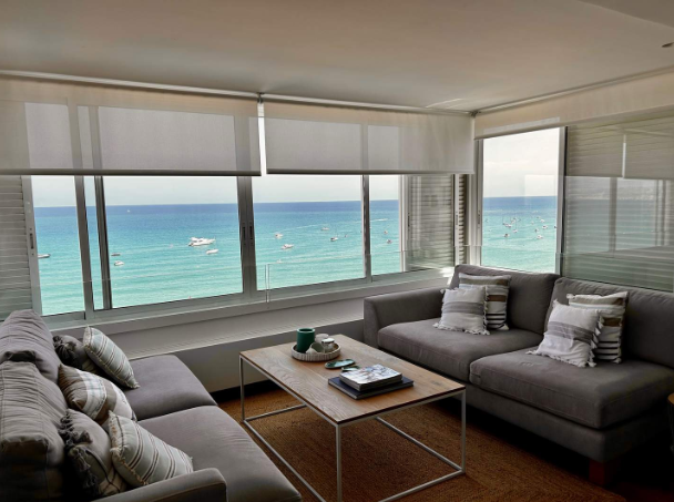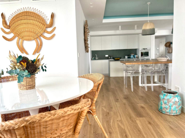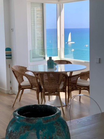 Piso cercano a la playa con increíbles vistas al mar, que dan la sensación de estar en un barco. Luminosa y amplia con cocina integrada, espacio reformado y decorado con muebles a medida de estilo mediterráneo.