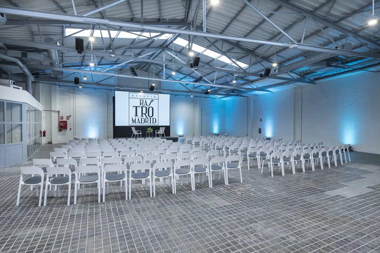 Rastro Madrid – Espacio industrial y versátil en el corazón de la capital. En pleno centro de Madrid, junto al metro de La Latina y a tan solo 500 m de la Puerta del Sol, Rastro Madrid es un espacio polivalente de más de 1.200 m², con capacidad para acoger hasta 300 personas en diferentes formatos. Rehabilitado sobre un antiguo garaje de la Ribera de Curtidores, mantiene la esencia industrial y castiza del barrio, combinando autenticidad con un diseño contemporáneo y totalmente equipado para eventos corporativos, culturales o sociales. El venue dispone de una sala plenaria de 380 m² diáfanos, salas de reuniones para 4 a 40 asistentes, zonas de marketplace, espacio para cócteles, galería, cocina profesional, parking propio, ropero, almacén y zona de hospitality. Su altura mínima de 4 m, acceso directo para vehículos y abundante luz natural garantizan flexibilidad para cualquier tipo de montaje, desde congresos hasta producciones audiovisuales. Equipado con audiovisuales de última generación, mobiliario de diseño y más de 150 plantas naturales, Rastro Madrid ofrece un entorno moderno, sostenible y 100% accesible. Además, su ubicación privilegiada lo convierte en una opción estratégica, rodeado de hoteles, restaurantes y excelentes conexiones de transporte. Perfecto para: congresos, presentaciones de producto, ferias y marketplaces, rodajes y shootings, reuniones de empresa, cócteles, talleres creativos, afterworks y celebraciones privadas.