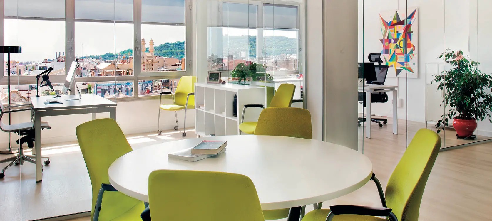 Su entorno privilegiado con vistas al mar y la sierra de Collserola lo convierte en un espacio único que inspira creatividad, productividad y conexión entre equipos.